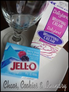Once again I was hanging out on Pinterest and came across this really fun idea. It is sky jello . Fun and easy for the kids to help with. Here is our version of the yummy, sugary goodness. First we gathered our ingredients.