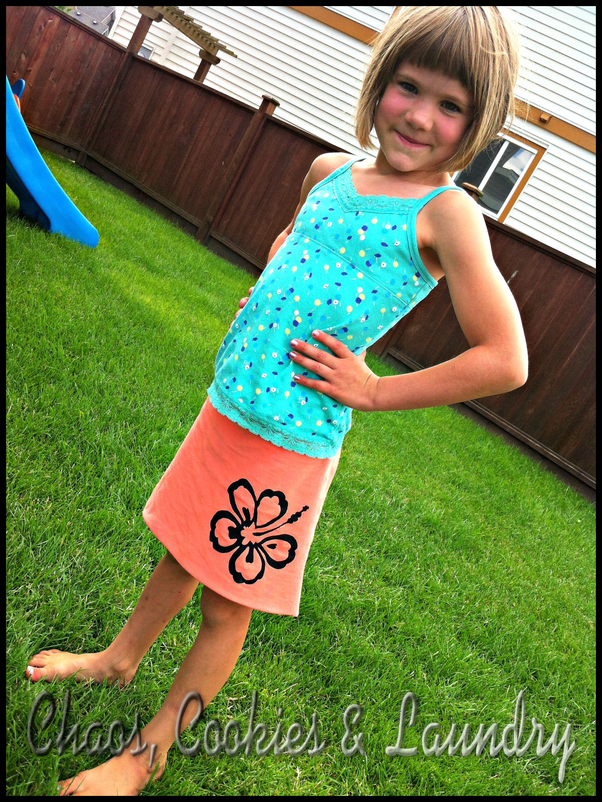 The other night while my oldest daughter was sleeping I threw a skirt together for her!!!!!!!!!!