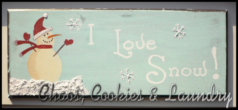 I always see the little signs in stores and in magazines that have a cute picture or neat saying.  I have always thought that they would not be too hard to make.  And of course, with anything homemade it is totally customizable.  So this is my first attempt at making my own little sign.  I think… Continue reading “I Love Snow”